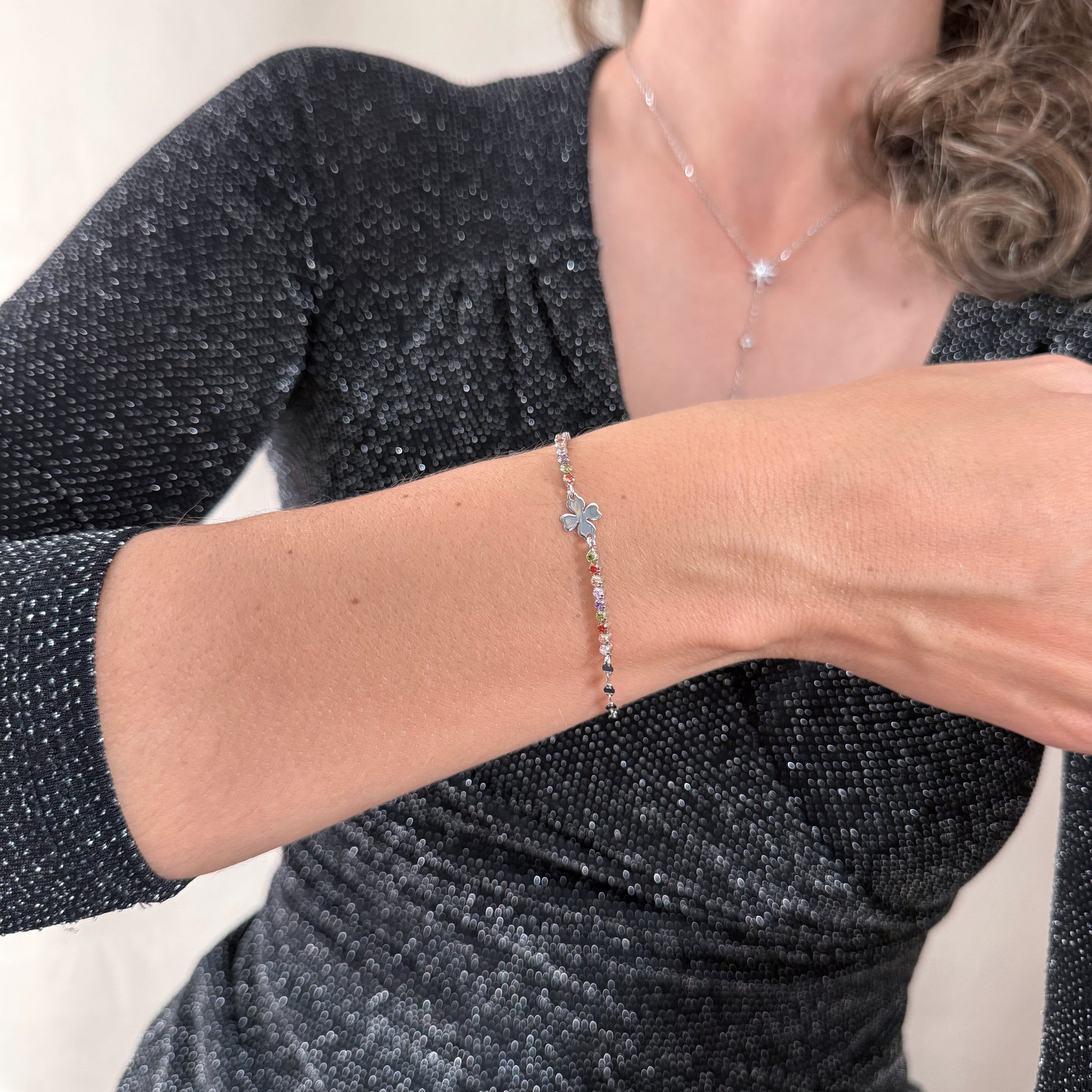 🌈 Karina Cluster (srebro 925) - čista igra boja bez dodatnih privjesaka. Minimalistička u obliku, maksimalno vibrantna u dojmu. Sjajna opcija kad želiš narukvicu koja se ističe sama po sebi ili se lako kombinira s drugima.